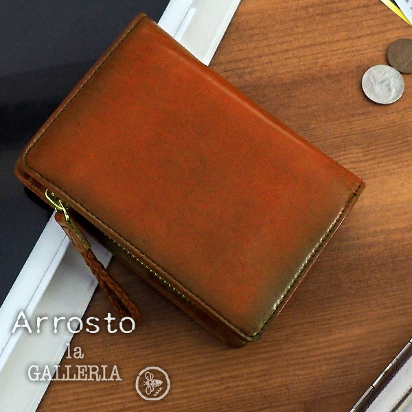 青木鞄 ラウンド ファスナー 二つ折り 財布 [2973] ミドルウォレット 縦型 アロースト メンズ 牛革 レザー 小銭入れ プレゼント ギフト ラッピング 父の日 誕生日 クリスマス キャメル チョコ ダークグリーン ダークブルー la GALLERIA ラ・ガレリア Arrosto