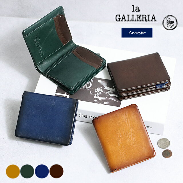 【最大1000円OFFクーポン発行中】 la GALLERIA ラ ガレリア 二つ折り財布 メンズ 青木鞄 本革 ARROSTO WALLET キャメル チョコ レッド ダーク ブルー 2971