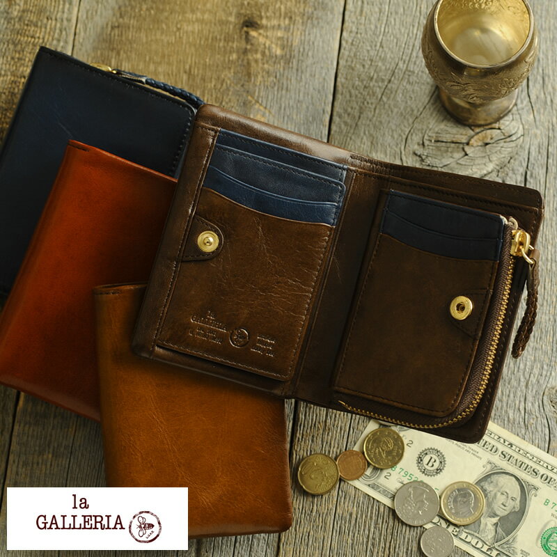 la GALLERIA ARROSTO WALLET ラ ガレリア 二つ折り財布 メンズ 青木鞄 本革 キャメル チョコ レッド ダーク ブルー 2971