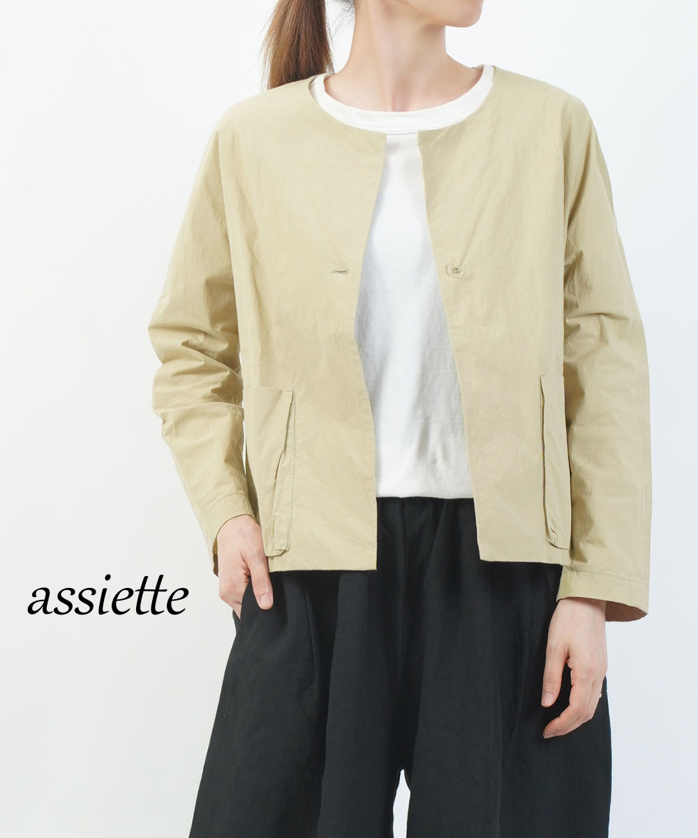 【ラスト1点50%OFFクーポン】【LINEクーポン有】アシェット assiette ジャケット ノーカラー 羽織り ショート丈 オフィス きれいめ カジュアル・A22-2739-52-1231501(レディース)