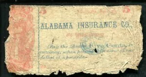1862 年 5 セント アラバマ保険会社、ジョージア州アトランタ 廃止された紙幣