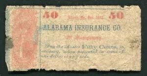 1862 年 50 セント アラバマ保険会社、ジョージア州アトランタ 廃止された紙幣
