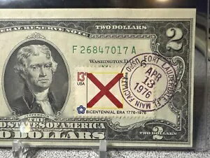 1976 年 $2 2 ドル紙幣 (アトランタ「F」) 切手旗。アラバマ州「4月13日」UNC