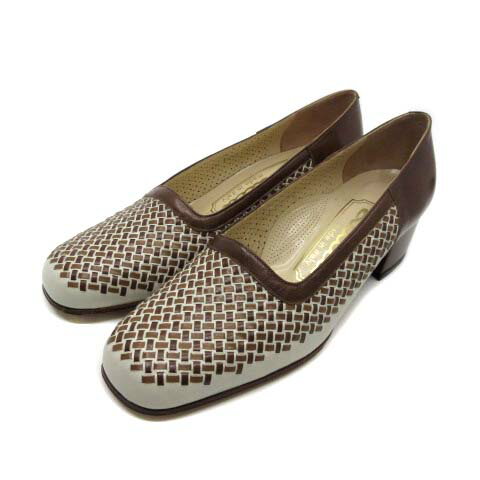 【中古】attica メッシュ レザー スクエア パンプス ブラウン 茶 37 約23.5cm イタリア製 レディース 【ベクトル 古着】 250625