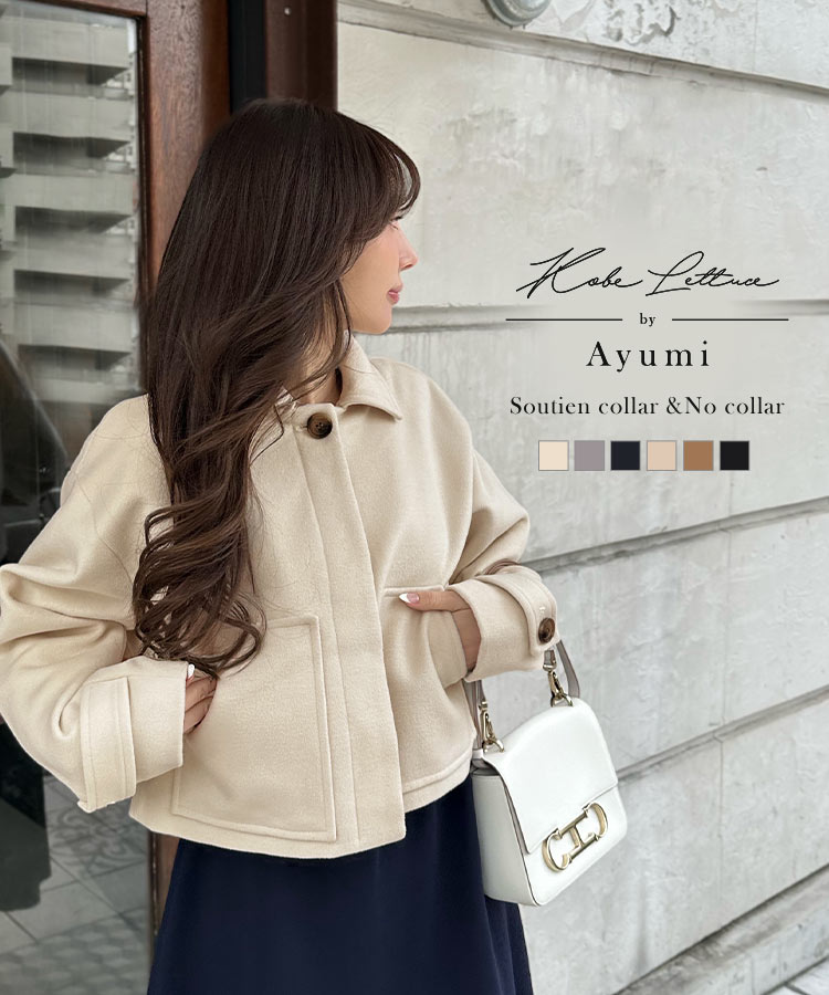 [ 岡部あゆみさんコラボ [ コート アウター ショートコート 選べる2タイプ ポケット デザイン [K1315] レディース 20代 30代 40代 高見え おかべ オカベ Ayumi ブルゾン アウター ステンカラー ノーカラー 高級感 ウール調【送料無料】