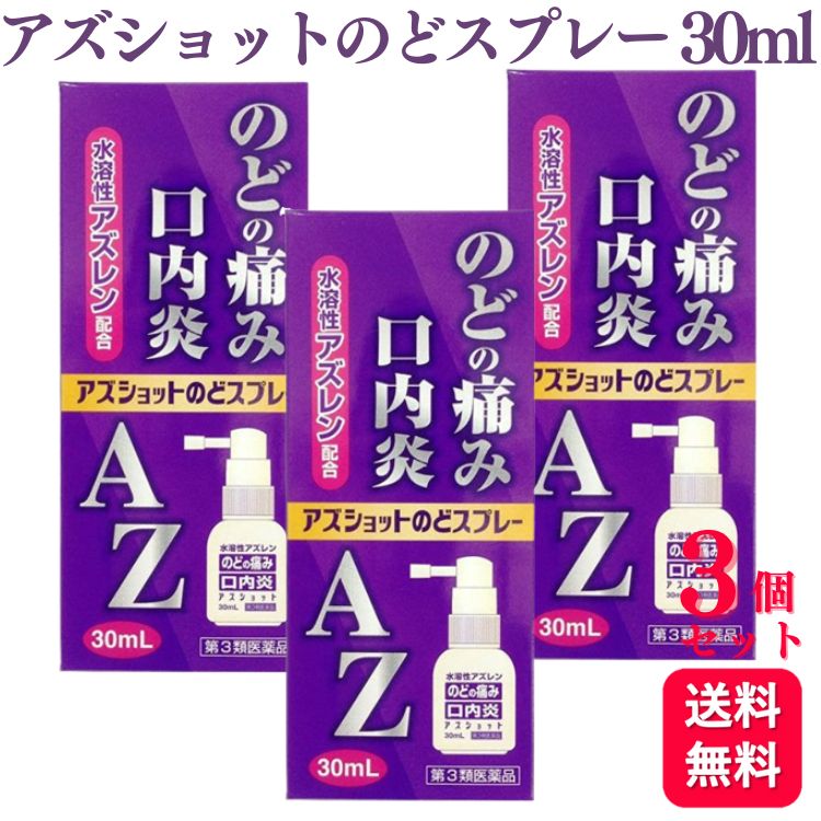 【第3類医薬品】【3個セット】 白金製薬 アズショットのどスプレー 30ml のどの痛み 口内炎