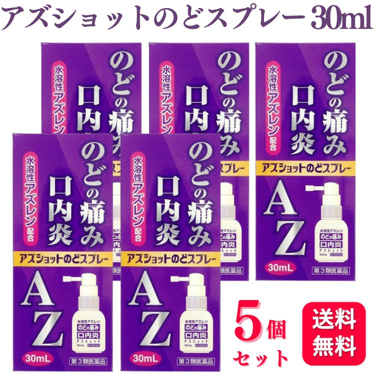 【第3類医薬品】【5個セット】 白金製薬 アズショットのどスプレー 30ml のどの痛み 口内炎