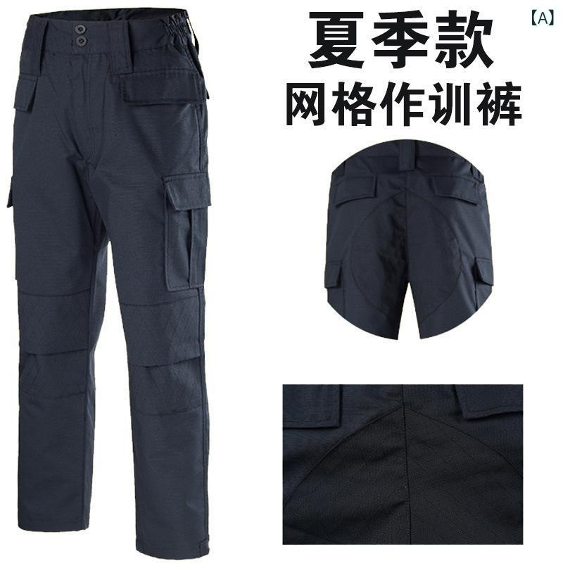 パンツ メンズ 男性用 警備員 セキュリティ 作業服 トレーニング ミリタリー メッシュ 耐摩耗性 丈夫な 吸湿速乾 綿混紡 厚手 ブラック 黒色 春夏秋 ズボン ボトムス