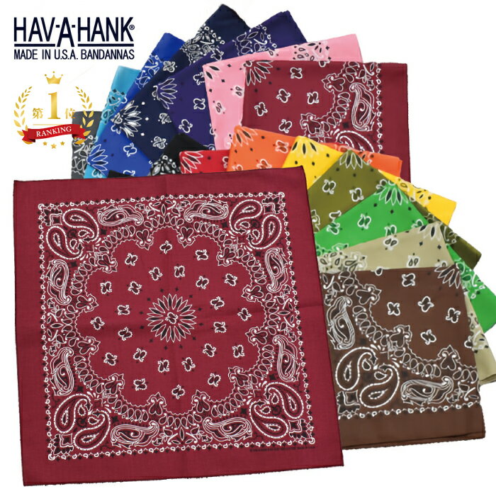 【 楽天ランキング 1位獲得 】ハバハンク HAV-A-HANK バンダナ 単品 USA製 綿100% 大判 ペイズリー柄|選べるカラー メンズ レディース ユニセックス|ハンカチ スカーフ 三角巾 犬用 アウトドア フェス 登山 自転車 旅行 おしゃれ アメカジ プレゼント ギフト 誕生日