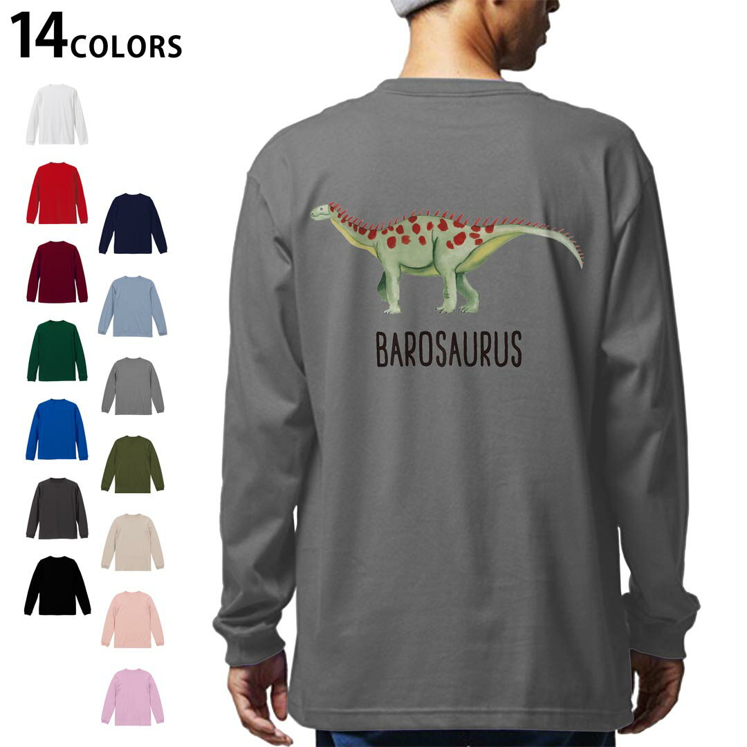 選べる14カラー バックプリント メンズ レディース ユニセックス unisex 長袖 デザイン XS S M L XL 2XL Tシャツ ロング ティーシャツ T shirt 019768 恐竜 barosaurus バロサウルス