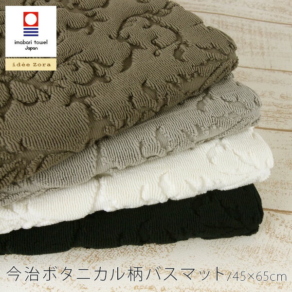 バスマット イデゾラ ボタニカル柄 綿100% タオル地 マット 日本製 今治タオル idee Zora 45×65cm タオルマット お風呂マット 足拭きマット 足ふきマット 吸水マット インテリア バスルーム サニタリー bathmat