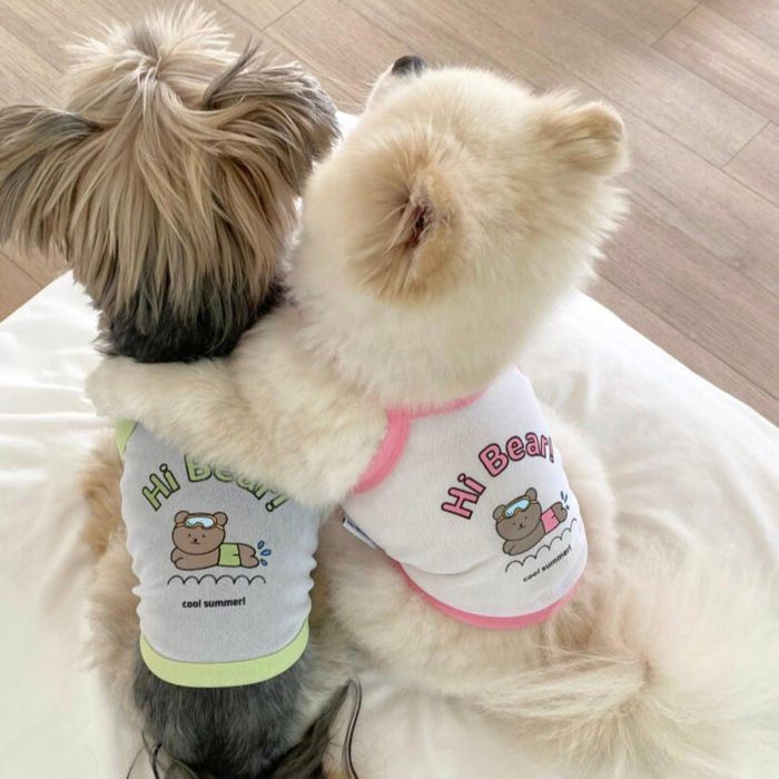※予約販売【Bonjour TOU-TOU】Hi swimiing Bear Tops(PInk) 犬服 ドッグウェア 犬の服 小型犬 小型犬服 犬用品 ドッググッズ Tシャツ スリーブレス 春