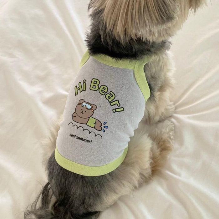 ※予約販売【Bonjour TOU-TOU】Hi swimiing Bear Tops(Green) 犬服 ドッグウェア 犬の服 スリーブレス 犬用品 ドッググッズ 小型犬 小型犬服 夏 夏服