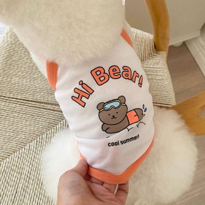 ※予約販売【Bonjour TOU-TOU】Hi swimiing Bear Tops(Orange) 犬服 ドッグウェア 犬の服 スリーブレス 犬用品 ドッググッズ 小型犬 小型犬服 夏 夏服