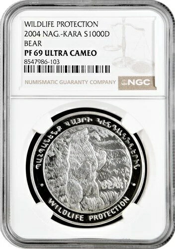ナゴルノ・カラバフ 1000ドラム 2004年 NGC PF69 UC、「野生生物保護 - クマ」TopPop