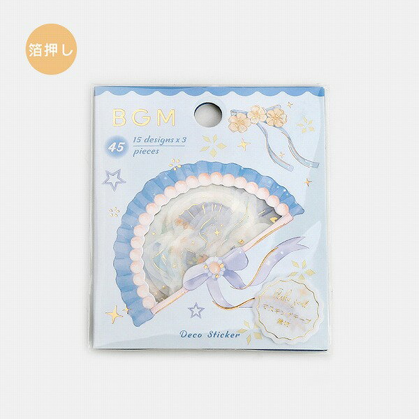 フレークシール ビージーエム BGM マスキングテープステッカー 箔押し扇子 BS-FG122 45枚入り