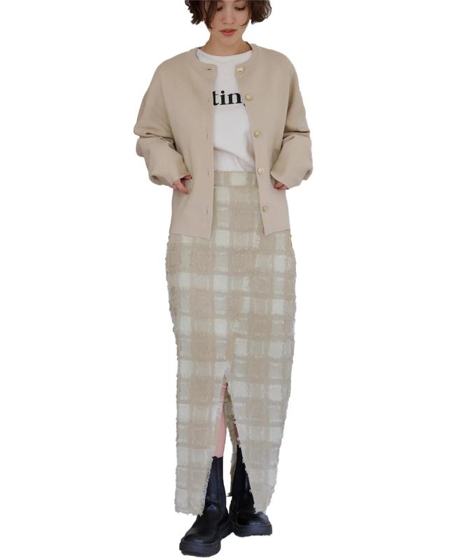 [ティティベイト] フリンジチェック センタースリット スカート AEJR3156 レディース