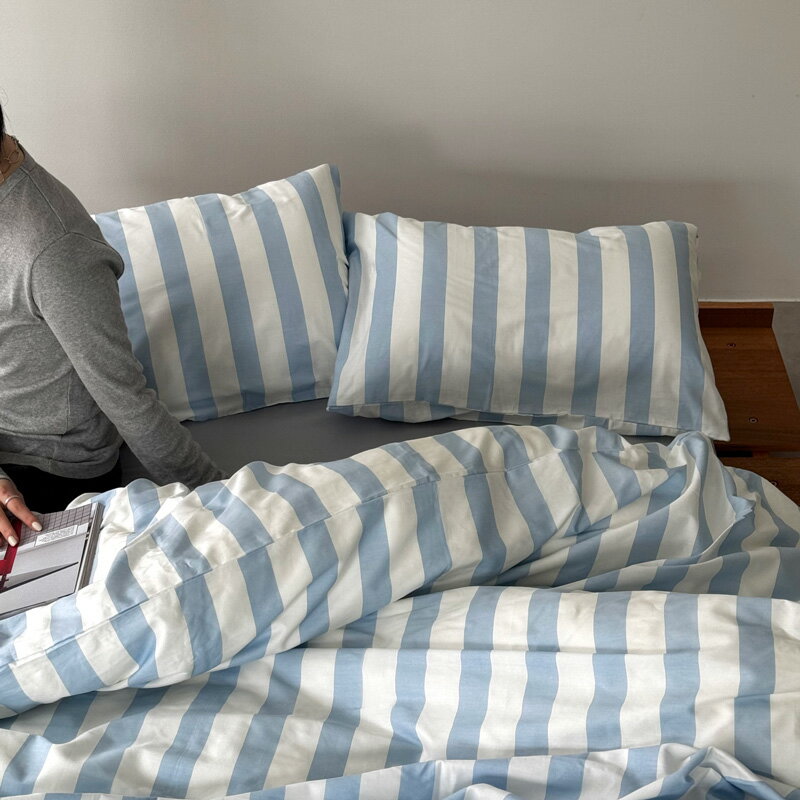 blue×white ボールドストライプ 布団カバーセット【ART OF BLACK】