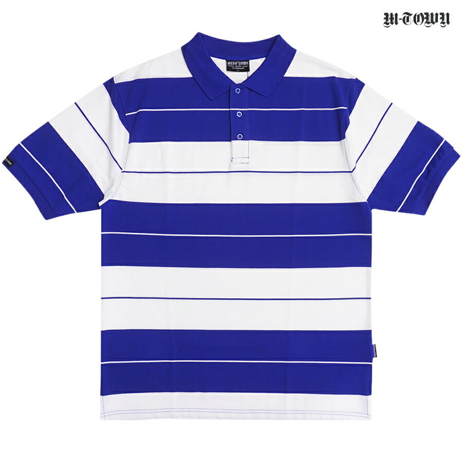 【FINAL PRICE★送料無料★ラスト1点】M TOWN PIQUE POLO SHIRTS【BLUE×WHITE】(M・L・XL・2XL)(通販 メンズ 大きいサイズ 服 ポロシャツ 半袖 ショートスリーブ ボーダー)