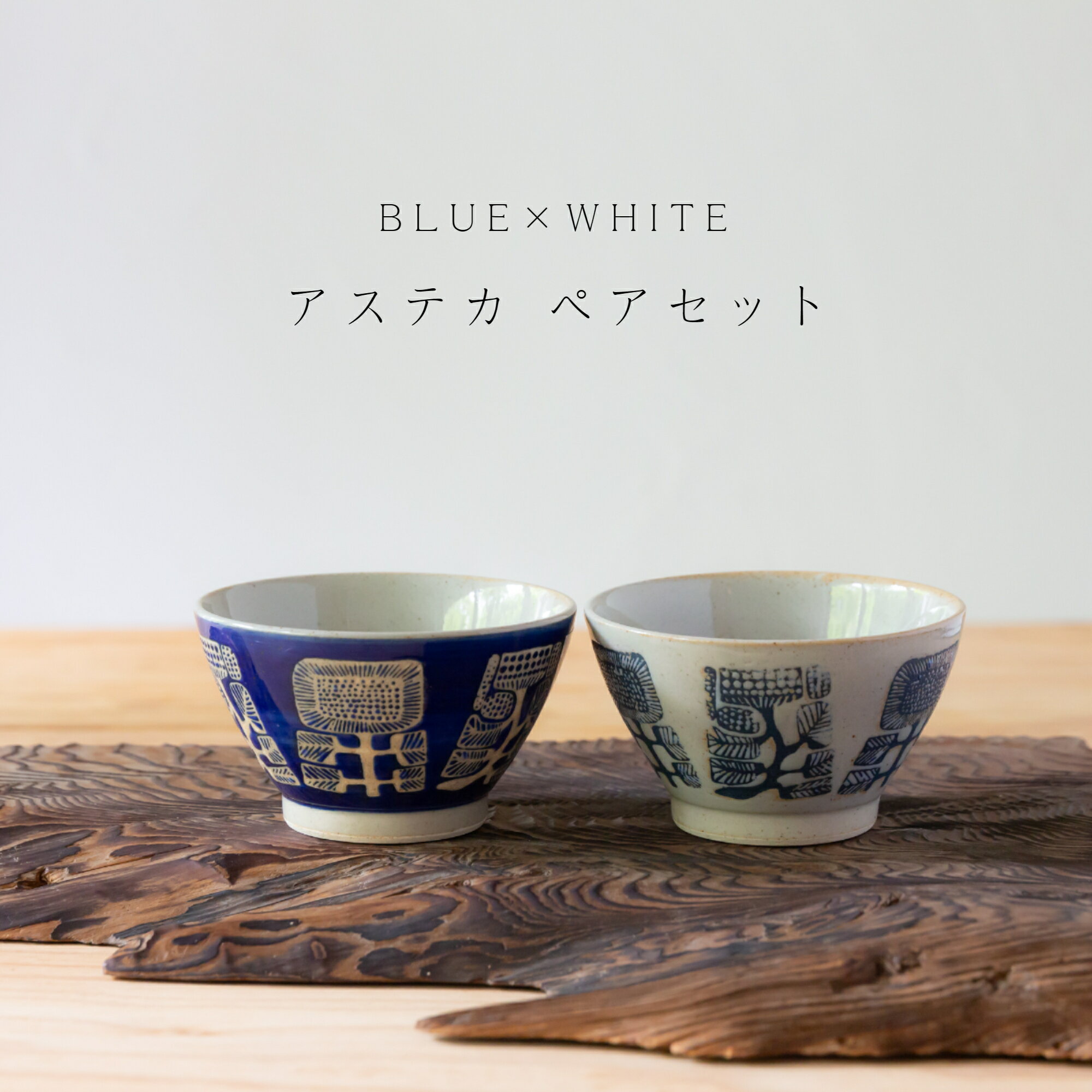 波佐見焼 アステカ AZTECA ご飯茶碗 BLUE×WHITE ペアセット 勲山窯 モダン 和食器 飯碗 お茶碗 食器 北欧 北欧風 茶碗 陶器 有田焼 父の日 母の日 お中元 引き出物 お祝い 内祝い 結婚祝 引越し 新築 開店祝 誕生日祝【楽ギフ_包装】【楽ギフ_のし宛書】