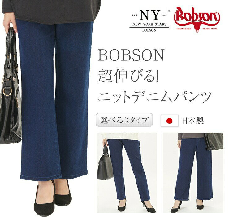 ボブソン デニムパンツ レディース ニット 新品 BOBSON 超伸びる ニューヨークスターズ NEW YORK STARS ジーンズ ジーパン スキニー ストレート ワイド 大きいサイズ もあり 総ゴム 低身長 高身長 ウエストゴム 4ポケット付 綿49% ロング丈 動きやすい 着痩せ