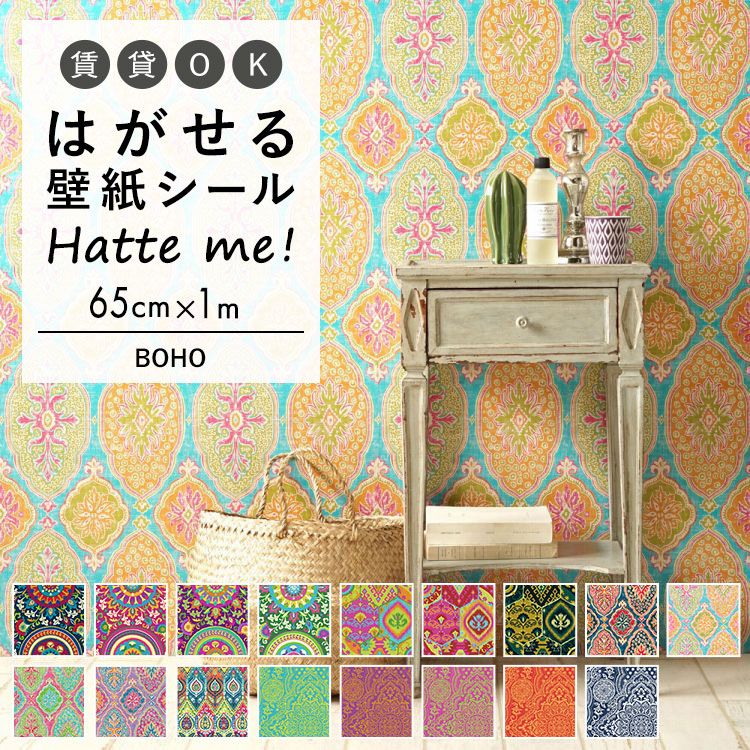 【全品対象クーポン配布中】 壁紙 シール はがせる 壁紙 リメイク シート シールタイプ 賃貸 オリジナル Hatte me! ハッテミー BOHO [65×1m] キッチン 防水 テーブル リメイクシート 壁紙屋本舗