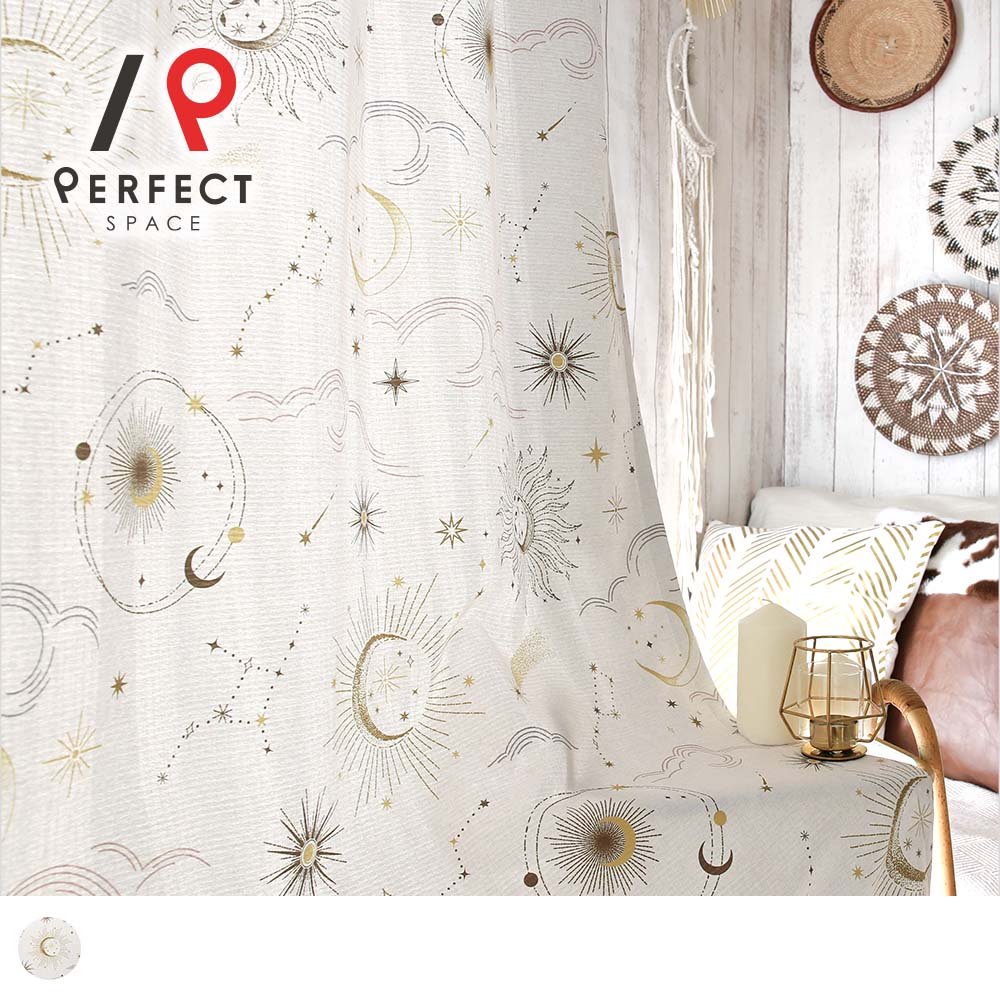 2級遮光カーテン カーテン 遮光カーテン 洗える オーダーカーテン オーダー 2枚セット 1枚 国内縫製 星 月 太陽 天体 星座 ベージュ