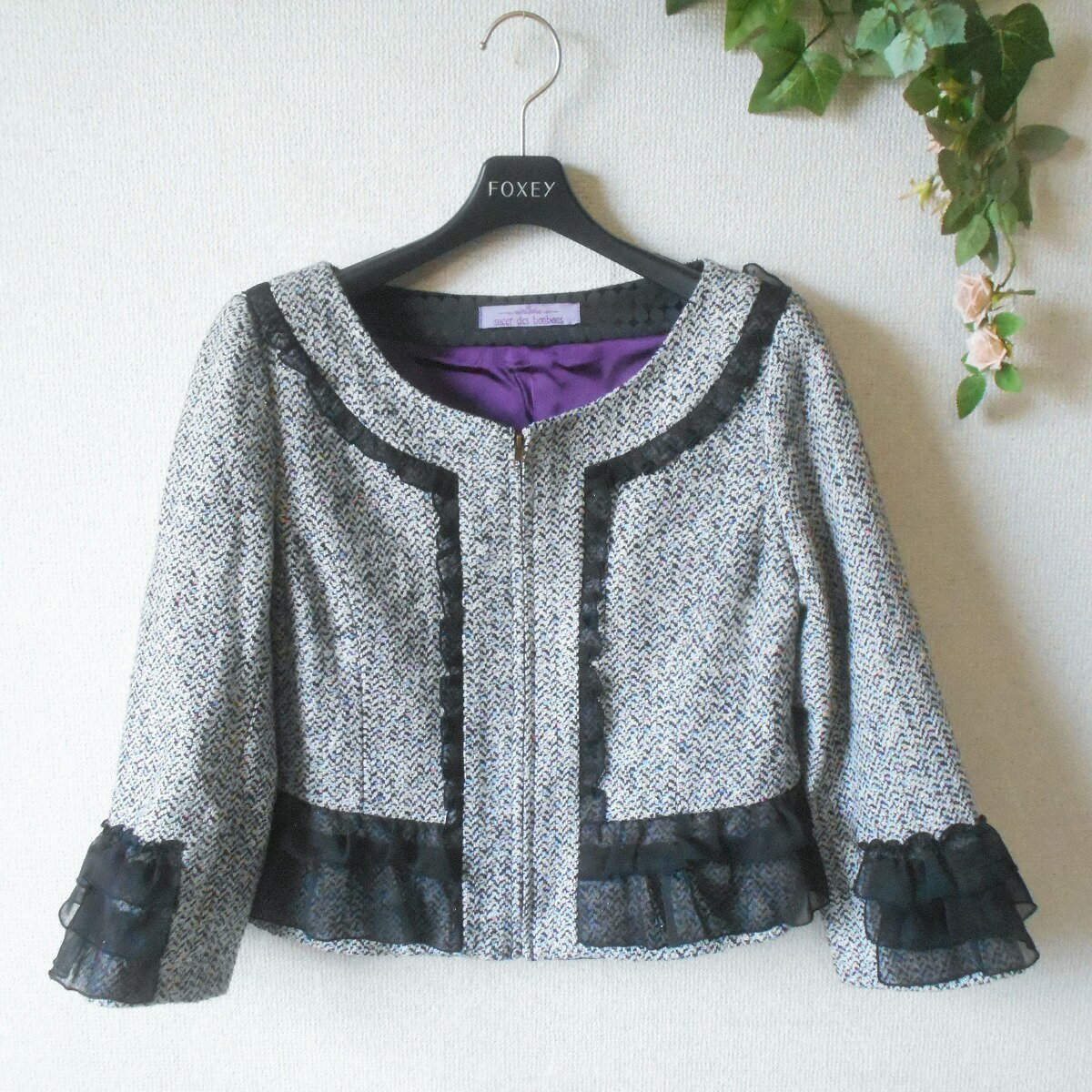 【中古】スサデボンボン sucer des bonbons ノーカラー ジャケット ジップアップ M レディース 秋 冬 シフォン フリル