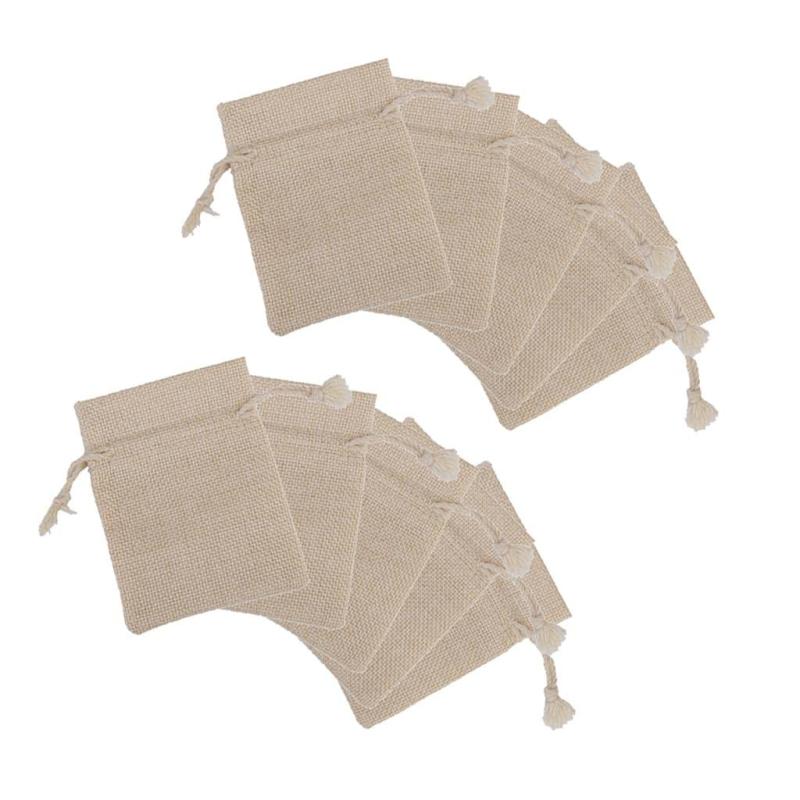 ノーブランド品リネン ジュート製 ギフトバッグ ジュエリーポーチ 巾着袋 カーキ 10枚