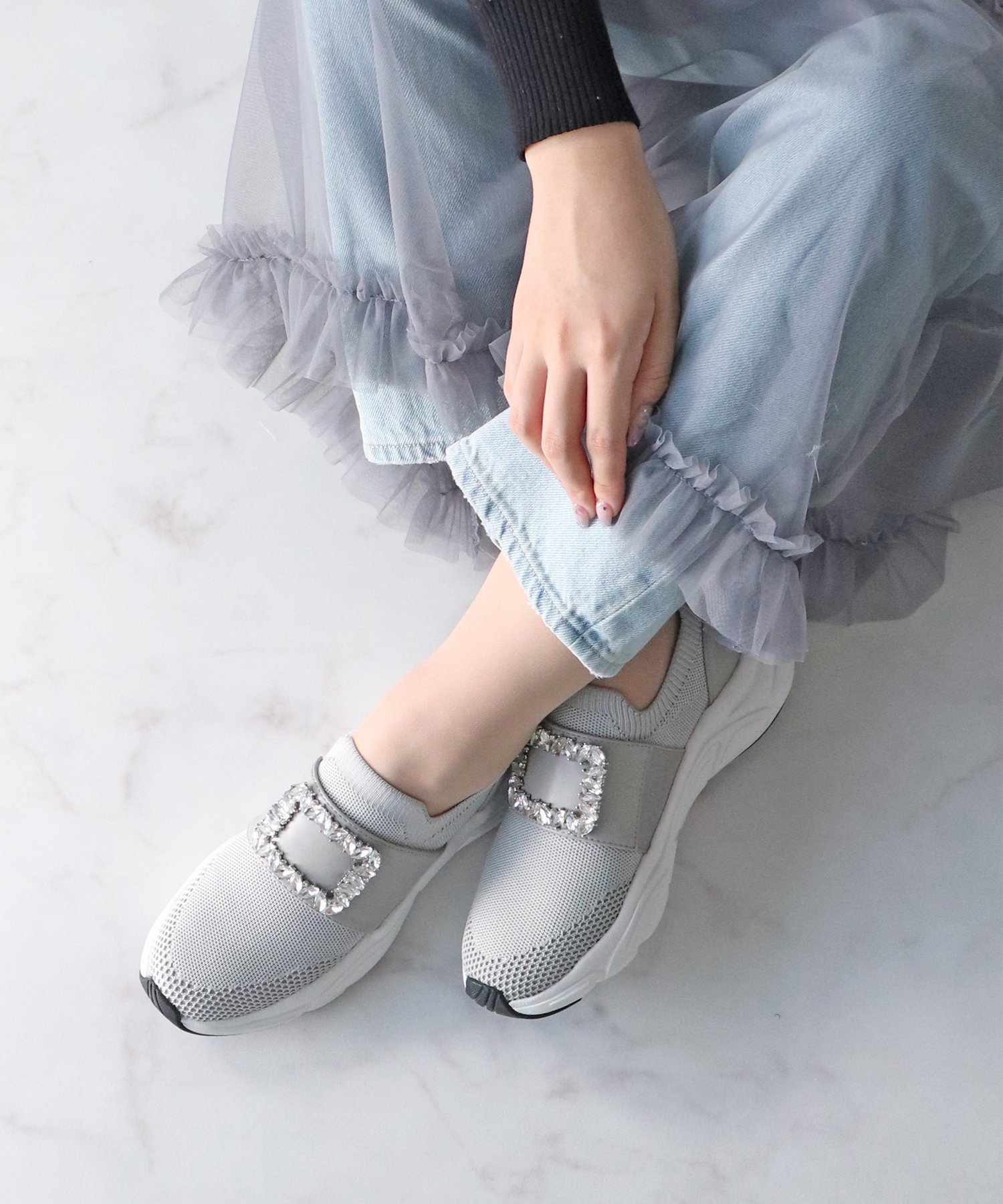 Bridget Birkin 【Bridget Birkin】ビジューバックルニットスニーカー ブリジットバーキン シューズ・靴 スニーカー ホワイト ブラウン グレー【送料無料】