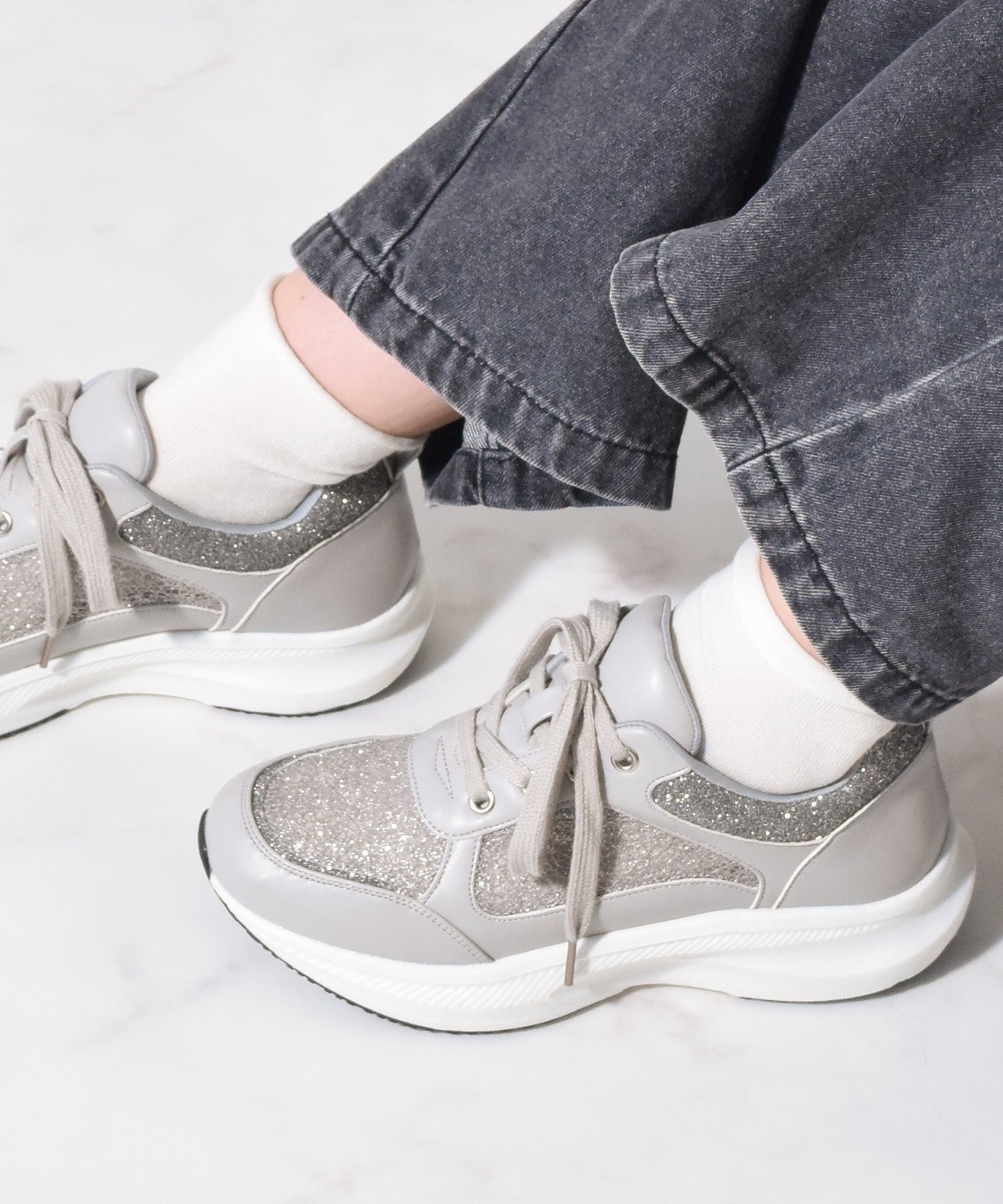 Bridget Birkin 【Bridget Birkin】ラメストーンスニーカー ブリジットバーキン シューズ・靴 スニーカー グレー ブラウン ホワイト【送料無料】