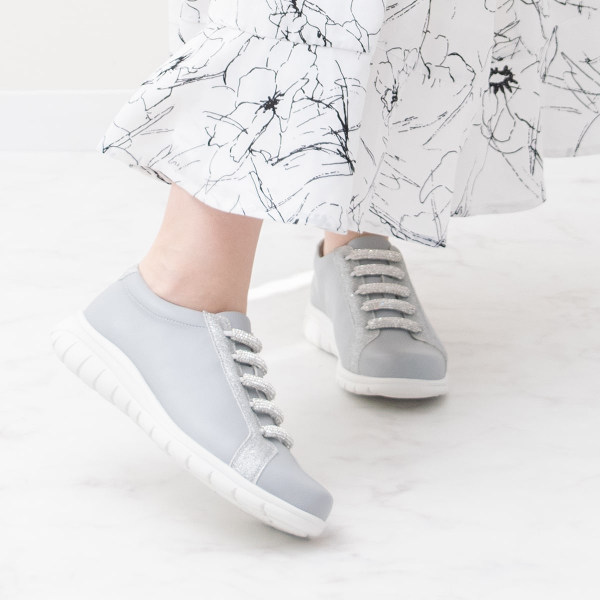 [型番:545019]キラッと光るストーンにラメが映えるスニーカー。スマートな形に上品な雰囲気が漂います。きれいめコーディネートに合わせるのもおすすめ。靴ひもを結ぶ必要がなく、さっと履けるのが嬉しいポイント。足なじみの良い素材で歩きやすい、見た目も機能性もばっちりな一足です。【Bridget Birkin/ブリジットバーキン】さり気ないデザインの中に”女性の可愛らしさ”への思いを込めた「ブリジットバーキン」。細部にまでちりばめられたスイートなディテールが、エターナルな可憐さ、心が弾む多彩な表情を引き出します。※生産過程に生じるキズが多少ある場合がございます。また素材の特性上、若干の色ムラ、擦れが見られる場合がございますが、こちらは素材の特性となります。予めご了承下さい。※輸送中に多少箱が破損する場合がございます。※撮影時の光の当たり具合により色味が違って見える場合がございます 。また、お客様のお使いのPCモニターやスマートフォン画面などの環境により色味が実際の商品と違って見える場合がございます。予めご了承ください。※サイズ換算(表記)はあくまで目安となります。重さ:約221g■カラー:ホワイト、グレー、ブラック※( )で表記されている数字はヌードサイズです。ヌードサイズとは衣服を身につけない身体のサイズです。お客様ご自身の身体サイズと比較してお選びください。 ■素材: 甲材:合成皮革 底材:合成ゴム ■お手入: >>商品のお取り扱い方法 ■原産国: 中国Bridget Birkin◆4cmヒール◆ラメストーンスニーカー/ブリジット バーキン(Bridget Birkin)ホワイトグレーブラック画面上と実物では、多少色具合が異なって見える場合がございます。