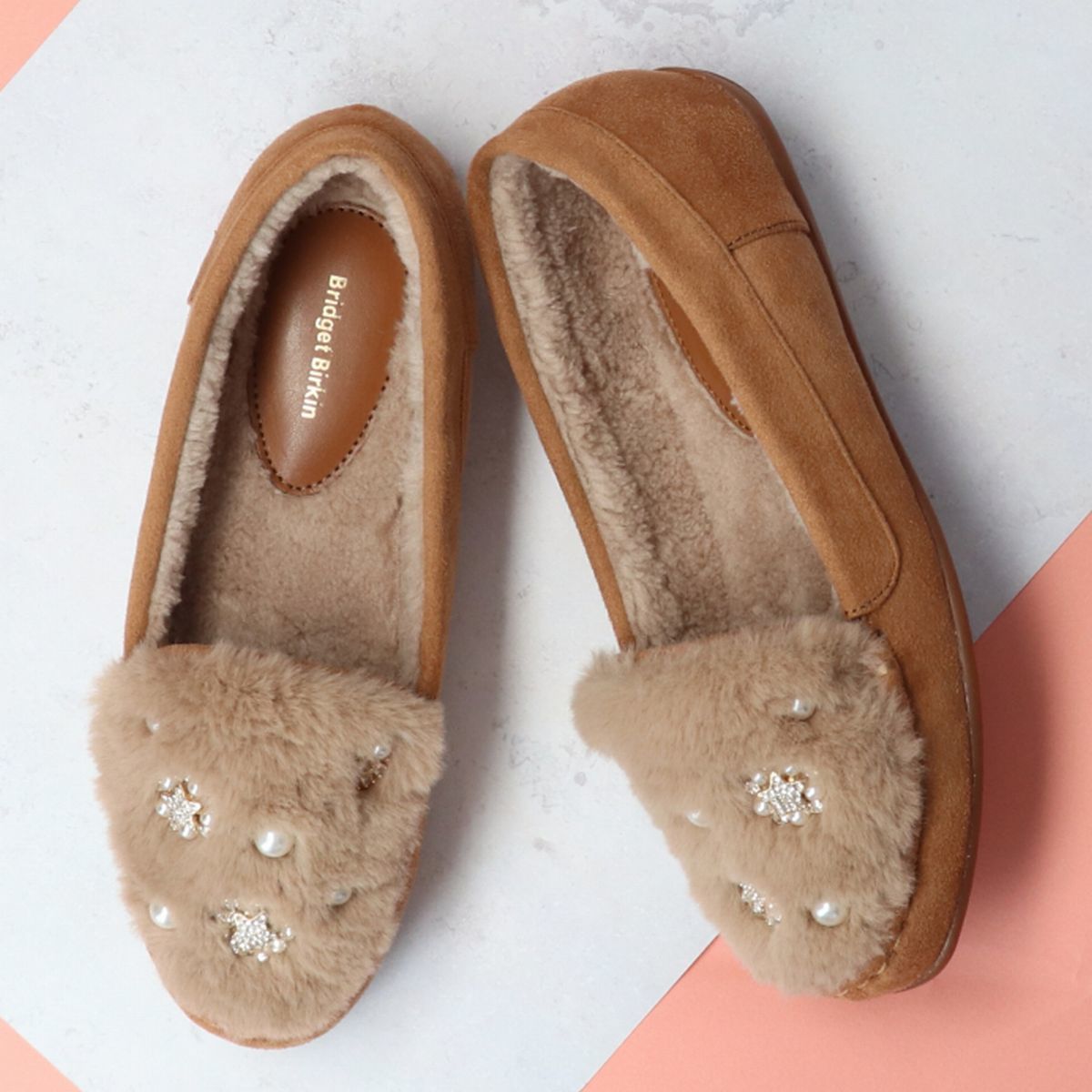 アウトレット◆1.5cmヒール◆ランダムビジュームートンシューズ/ブリジット バーキン(Bridget Birkin)