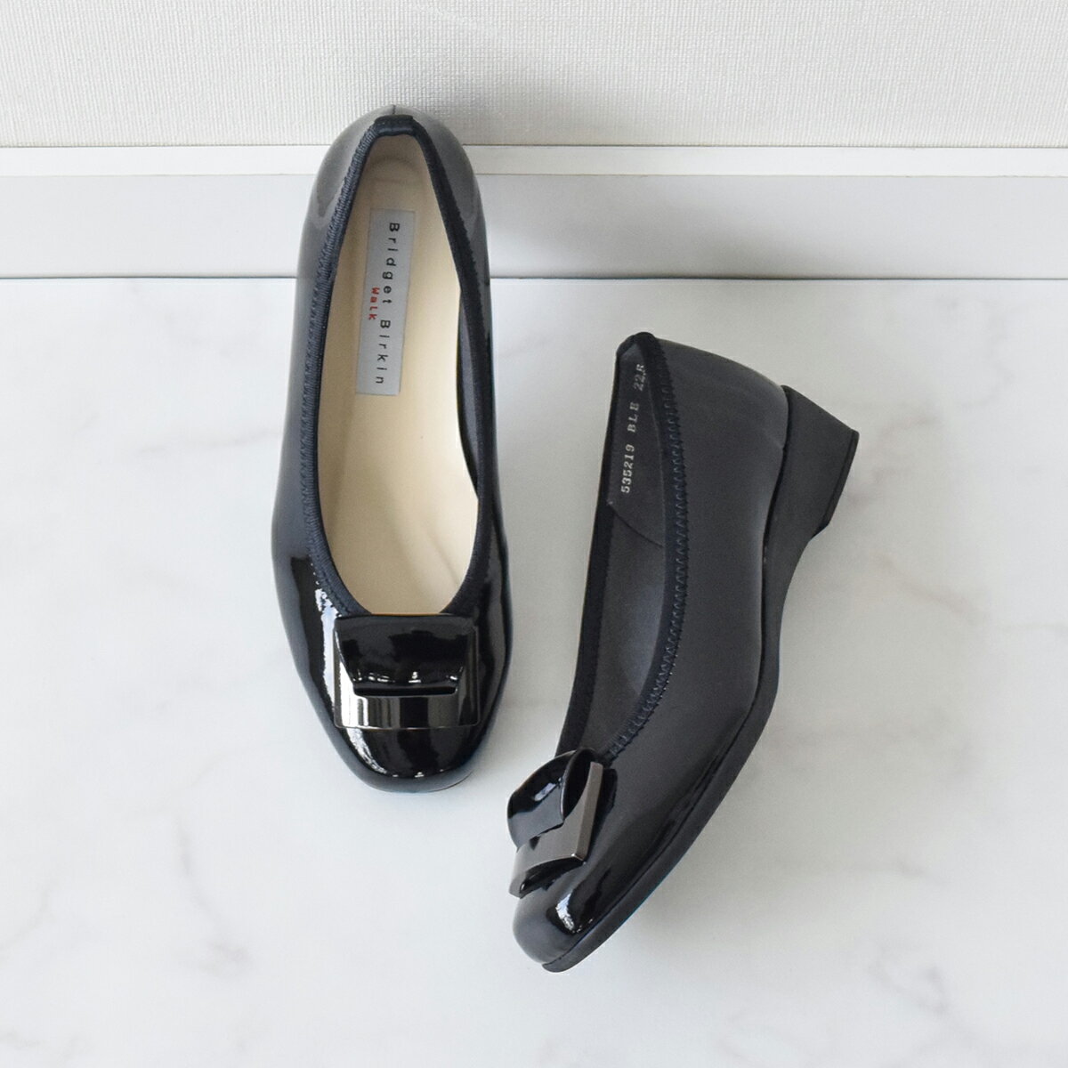 ブリジット バーキン Bridget Birkin スクエアバックルフラットシューズ (ブラックエナメル)