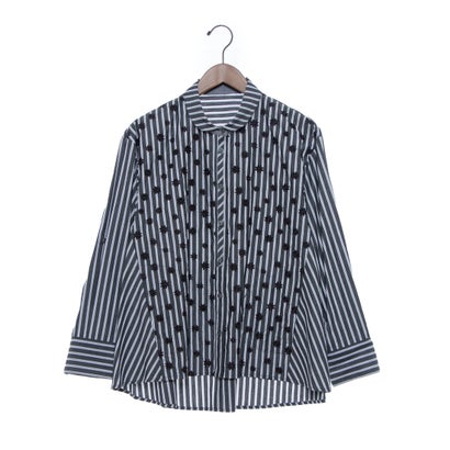 ブローディア BRODIAEA 花柄刺繍ストライプブラウス (ブラック)