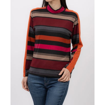 ブローディア BRODIAEA 日本製 マルチボーダーハイネックプルオーバー (ワインレッド)