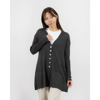 ブローディア BRODIAEA 編地切り替えロングカーディガン (チャコールグレー)