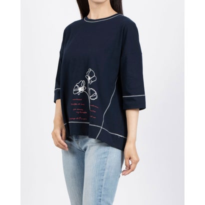 ブローディア BRODIAEA フラワープリント5分袖カットソー 2本針ステッチ (ネイビー)