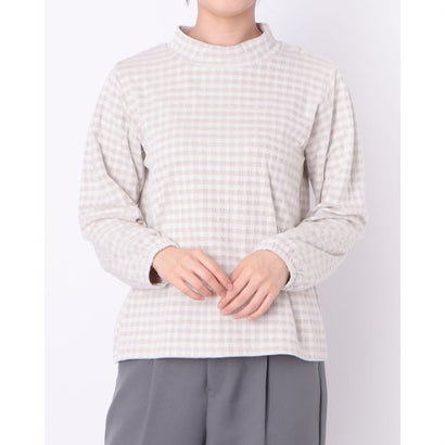 ブローディア BRODIAEA 接結ギンガム ハイネックプルオーバー【日本製】 (ベージュ)