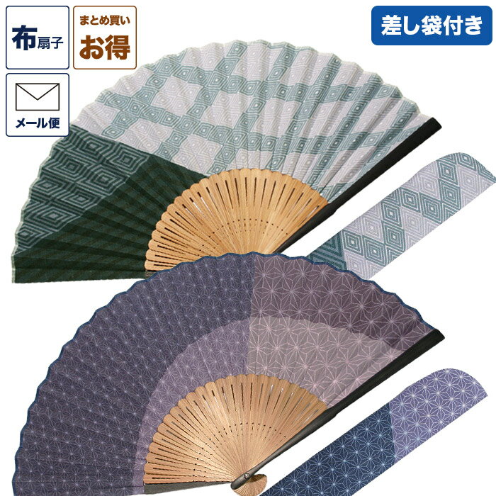 布扇子 扇子 扇子袋 差し袋 セット 「ブロークンパターン」 麻の葉 菱形 男性用 紳士用 メンズ 和服 着物 夏 ギフト 和雑貨 父の日 敬老の日