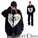 RomelCheo ブロークン ハート セーター ジャガード ニット ロゴ 傷心 失恋 絆創膏 傷テープ メンズ レディース 総柄 ゆったり ダボ ビッグシルエット 長袖 モノクロ ストリート系 原宿系 個性的 ロック スケーター ファッション ロメルチェオ