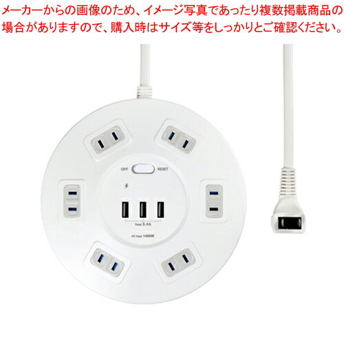 商品の仕様●コンセント同士がぶつからない便利な丸型。●USBを3台まで同時接続。●機器の最適な出力を自動識別し、急速充電します。●過電流などの異常を探知するとブレーカーが作動し、自動で電源が切れます。●配線に便利なL型プラグ。●耐トラッキングカバー付き。●コード長:2m※商品画像はイメージです。複数掲載写真も、商品は単品販売です。予めご了承下さい。※商品の外観写真は、製造時期により、実物とは細部が異なる場合がございます。予めご了承下さい。※色違い、寸法違いなども商品画像には含まれている事がございますが、全て別売です。ご購入の際は、必ず商品名及び商品の仕様内容をご確認下さい。※原則弊社では、お客様都合(※色違い、寸法違い、イメージ違い等)での返品交換はお断りしております。ご注文の際は、予めご了承下さい。