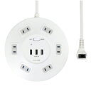 レビュー投稿で次回使える2000円クーポン全員にプレゼント■商品内容●スマートフォンやタブレットを充電できるUSB-Aポートを3口搭載したAC6個口、ケーブル長さ2mの円形OAタップです。●雷から接続機器を守る耐雷サージ機能付。●過電流を防止するブレーカー内蔵。●ホコリ防止のAC差込口扉。●コードは保護被ふく付安全構造。●スッキリ配線できるL型プラグ。■商品スペック色:ホワイトコンセント仕様:2P・扉付コンセント数:6個口プラグ形状:2極L型・耐トラッキングカバー付定格容量:AC100V 14A(合計1400Wまで)ケーブル長さ:2m最大サージ電圧:3000V雷ガード:あり一括集中スイッチ:ありブレーカー:あり寸法:W165×D165×H33mmその他仕様:●USBポート:定格DC5V合計3.4A(1ポート最大2.4A)、USB-A×3ポート●使用温度範囲:-10℃〜40℃■送料・配送についての注意事項●本商品の出荷目安は【1 - 5営業日 ※土日・祝除く】となります。●お取り寄せ商品のため、稀にご注文入れ違い等により欠品・遅延となる場合がございます。●本商品は仕入元より配送となるため、沖縄・離島への配送はできません。[ WLS-R6332BUA(W) ]