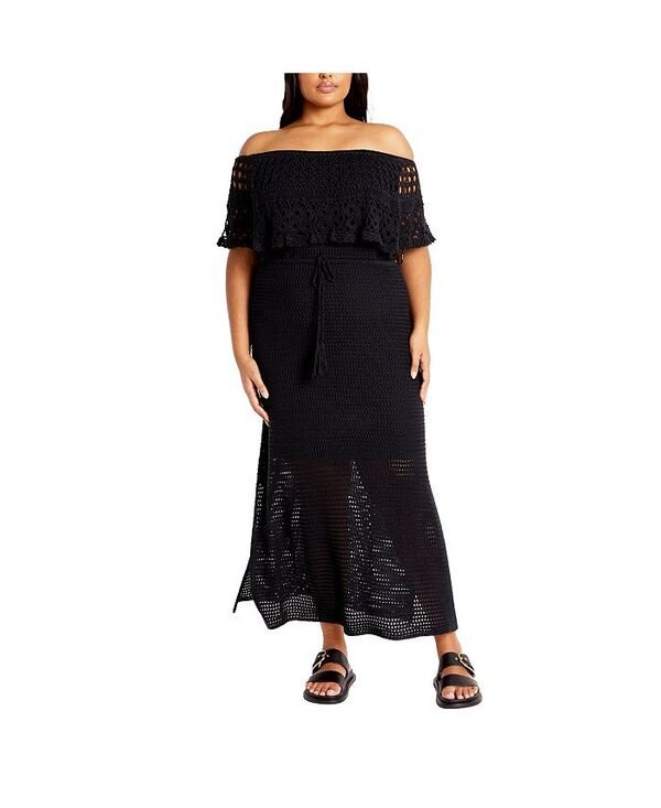 シティーシック レディース トップス ワンピース プラスサイズ CITY CHIC Plus Size Callie Crochet Dress Black ブラック