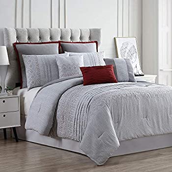 【中古】【輸入品・未使用】Amrapur Overseas Callie 刺繍入り掛け布団8点セット クイーン グレー