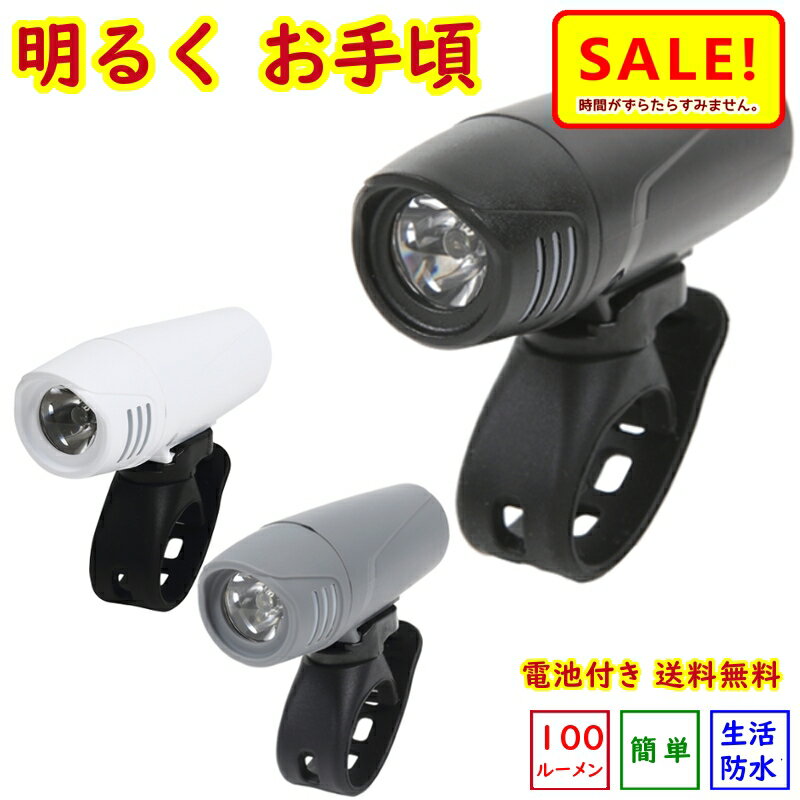 5倍 27日早朝迄 自転車 ライト LED O-255 明るく お手頃 JIS適合 870カンデラ 生活防水 IP44 送料込み 電池サービス 高輝度 コスパ ブラック ホワイト グレーの3色 簡単取付ゆうパケットパフ