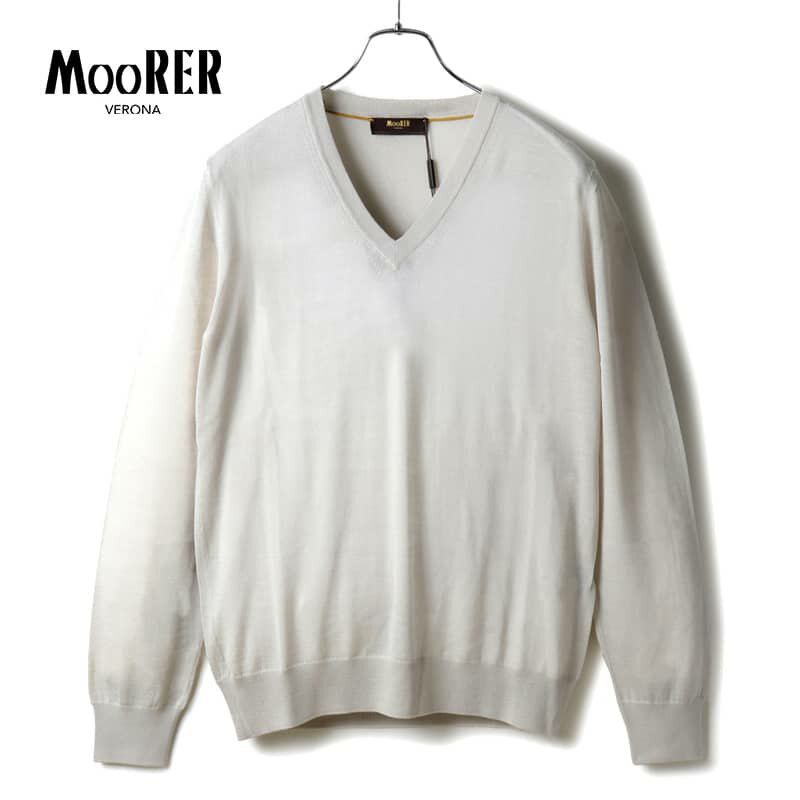 【60%OFF】MOORER / ムーレー|ヴァージンウールハイゲージVネックニット(CANTONI-MLL)|(ライトベージュ)| 秋冬 セーター 長袖ニット ハイゲージニット ソリッドニット ヴァージンウール メンズ イタリア アウトレット
