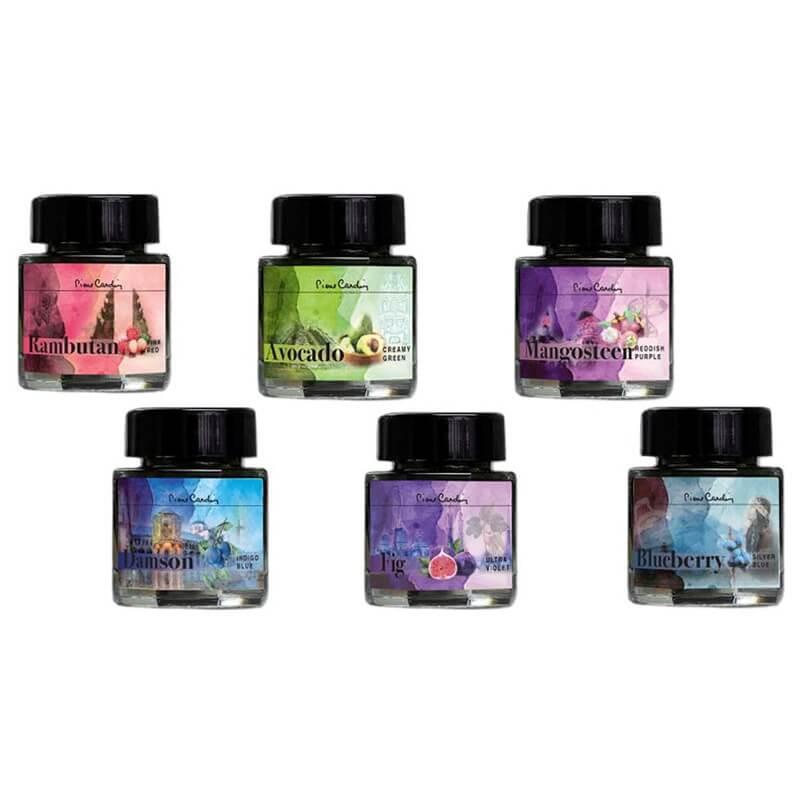 ピエールカルダンのラメ入りインク、フレッシュなフルーツの色がインクとラメで表現されています。ガラスペンなどでお楽しみください。単色は30mlボトル、少しコンパクトな20mlボトルで全6色をコンプリート出来るスペシャルコレクターズボックスもあります。ランブータン・ピンクレッド書いた時にはオレンジが濃く、乾いてくるとピンクが出てきます。少し淡い紫がかった輝きはパステル感も生み出します。アボカド・クリーミーグリーンアボカドの内側のような黄緑色、イエローとグリーンが混ざり合いアボカドのクリーミーさを感じるよう。ライトブルーに輝くラメは、お日様の下でアボカドに日を注いでいるかのようです。マンゴスチン・ラディッシュパープルワインレッドのようなパープル、赤みがかった紫の輝きが高貴な趣を感じさせます。赤みを感じる臙脂色、そんな色が浮かびます。ダムソン・インディゴブルー書いた時にはインディゴのまっさらなジーンズのような青、乾くと少し緑がかった青い煌めきを醸し出します。とってもやんちゃな色です。イチジク・ウルトラバイオレット煌めきを得たバイオレットは本当に素敵だと思います!少しピンクがかった煌めきが青みがかった紫の上に載り、砂金が輝いているかのようにも見えます。ブルーベリー・シルバーブルー書いた時はブルー、乾くとグレー。そこに少し青みがかったシルバーの煌めきが出ます、落ち着いているグレーが煌めきを得てとても華やぐのです!【商品仕様】単色(30ml)サイズ:直径約40mm、高さ約54mmボックスサイズ:約45x45x55mm【免責事項】在庫データは定期的に更新しておりますが、一部の商品につきましては実店舗と在庫を共有しておりますので、ご注文のタイミングによっては欠品・完売となりご用意が出来ない場合がございます。ご了承の程よろしくお願い申し上げます。