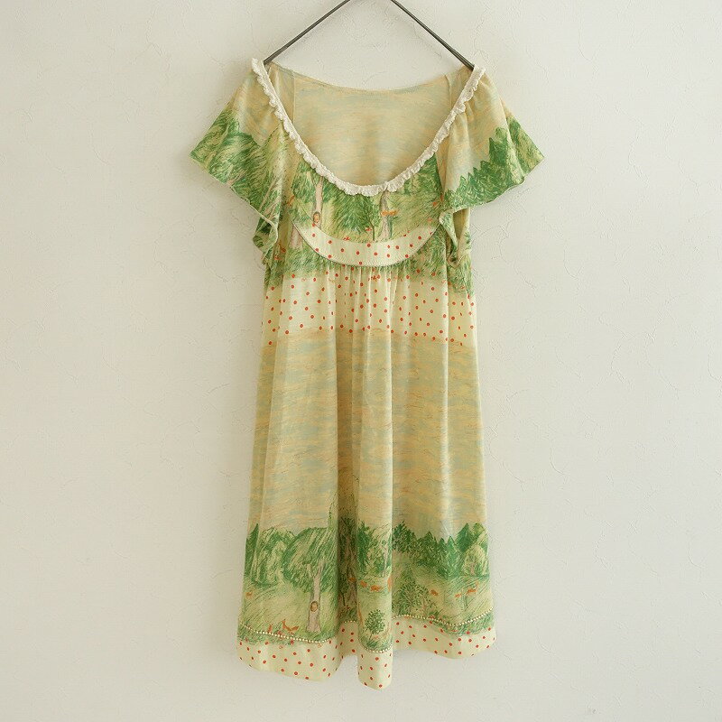 シェリーラファム Cherir la femme プリントフレンチスリーブワンピース M 【中古】【12I52】