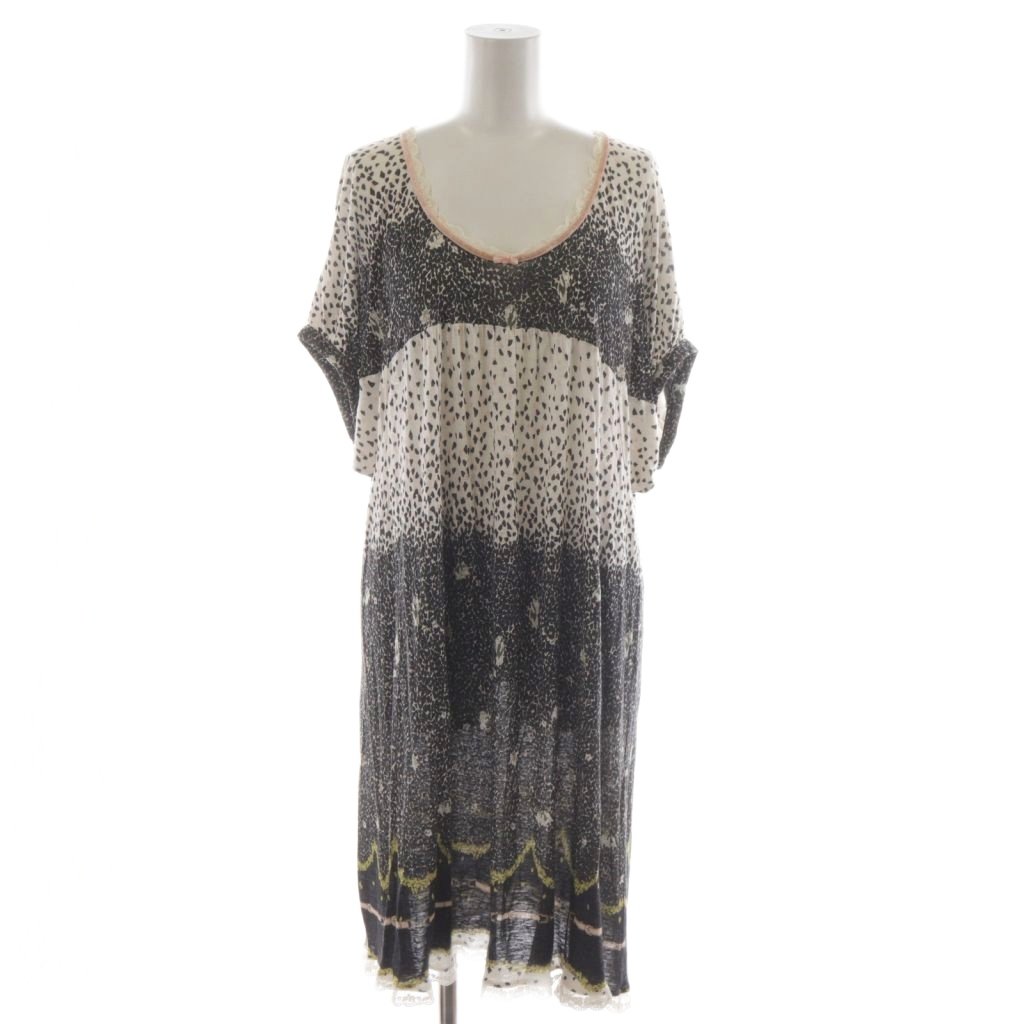 【中古】シェリーラファム Cherir la femme ワンピース ひざ丈 半袖 総柄 レース M 黒系 421166 /RR レディース 【ベクトル 古着】 250924
